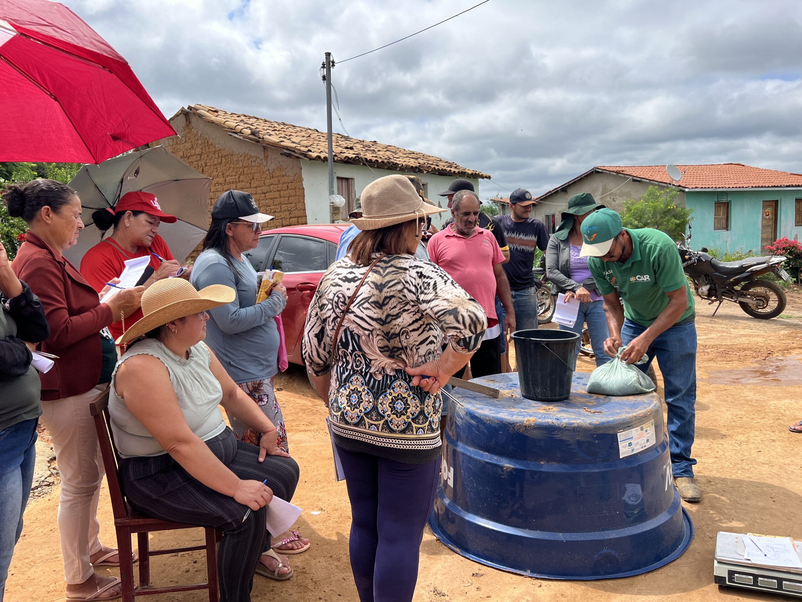 Para que agricultores e agricultoras possam receber o barreiro, é necessário realizar duas capacitações técnicas: Gerenciamento de Água para a Produção de Alimentos (GAPA) e Sistema Simplificado de Manejo de Água (SISMA). Durante as capacitações, teoria e prática se unem para que as famílias participantes possam garantir segurança alimentar e nutricional durante todo o ano, independente dos momentos de escassez. Na foto acima, temos a produção de biofertilizante Biogeo durante o SISMA, capacitação que dura três dias e traz atividades práticas que auxiliam no campo.